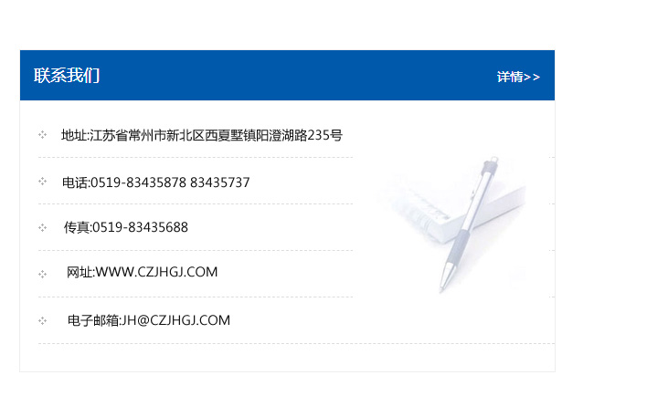 地址:常州市新北區友邦商務大廈1幢16、17層  電話:0519-85101652  傳真:0519-85112595  郵編:213022  網址:www.cz-jiayue_cn.shyz-culture.com  郵箱:xiajifengaa@163.com